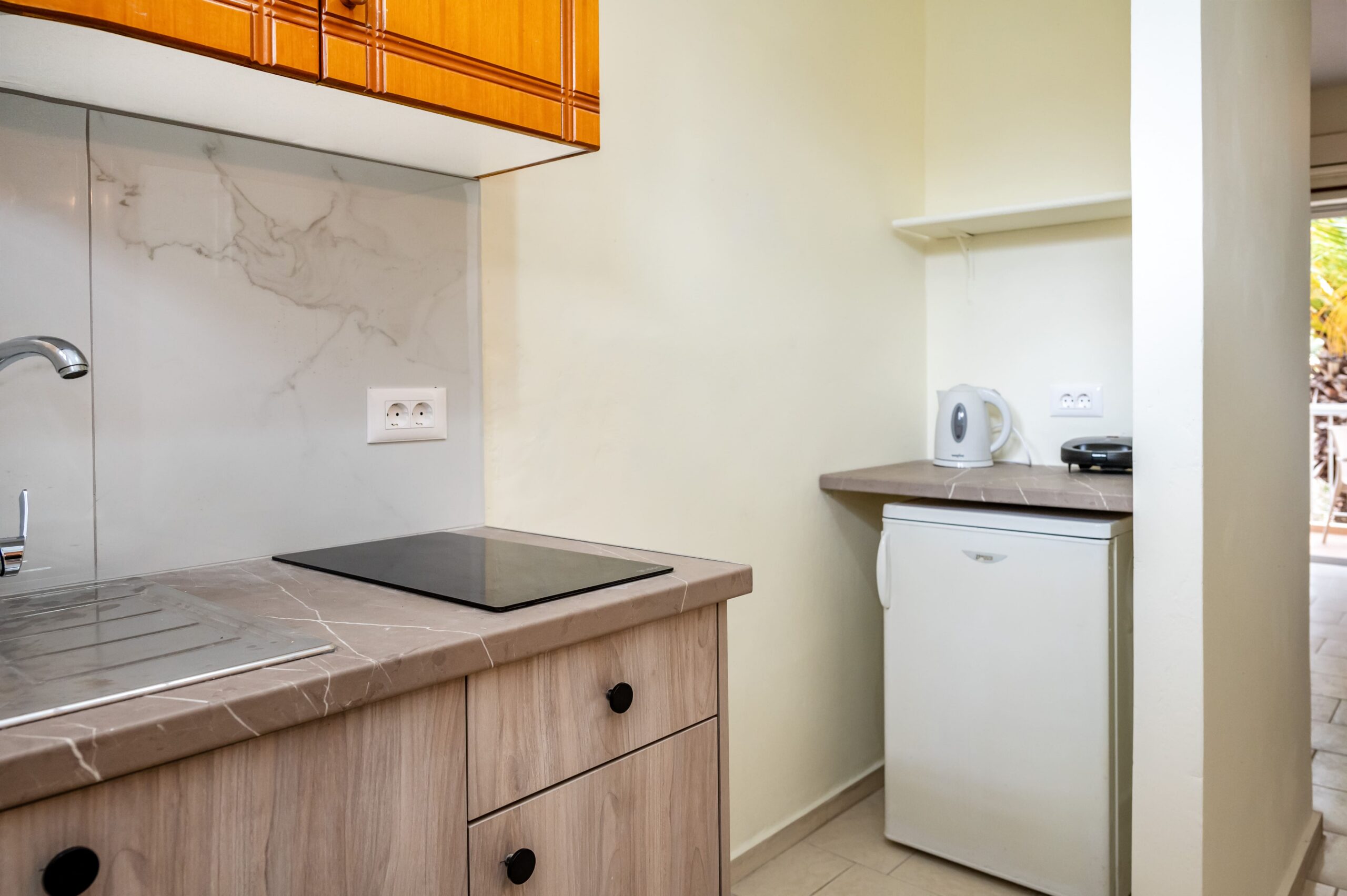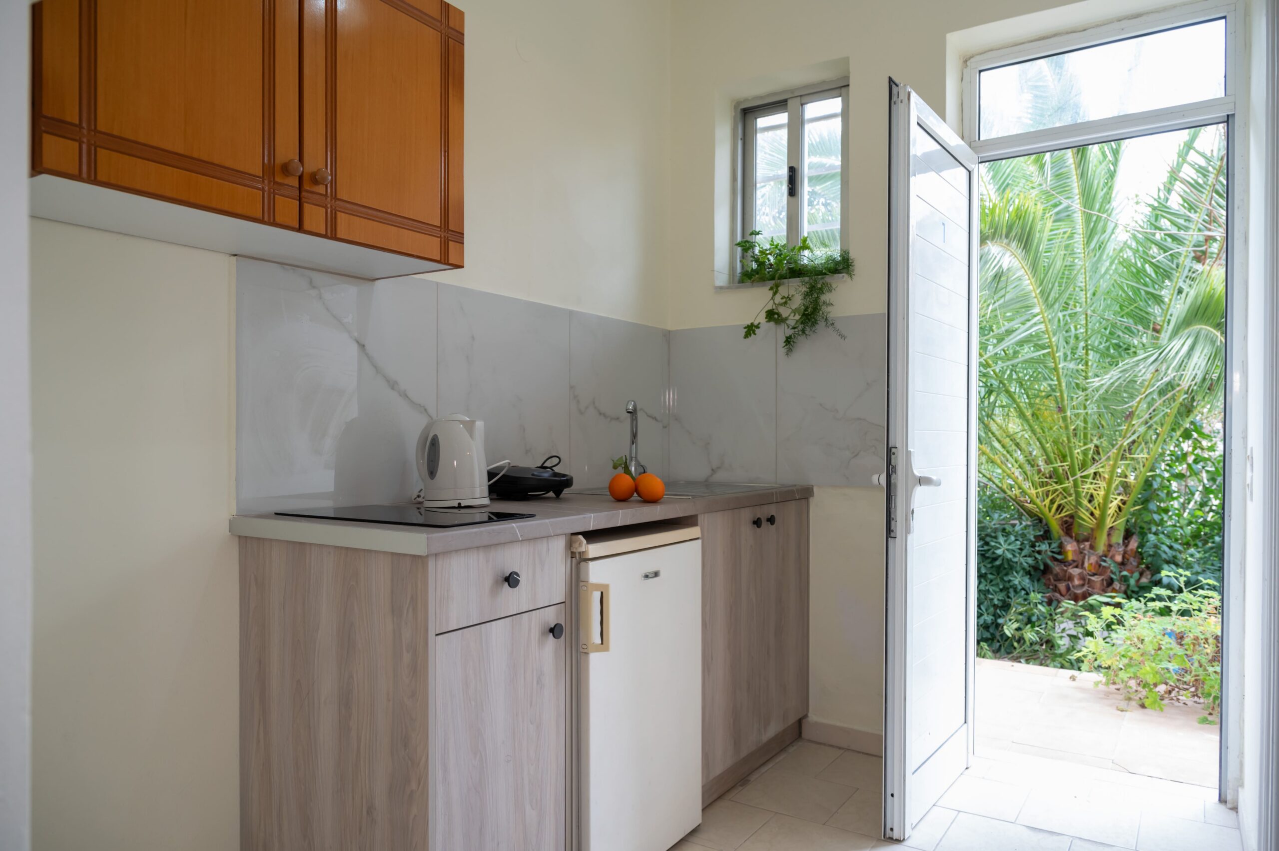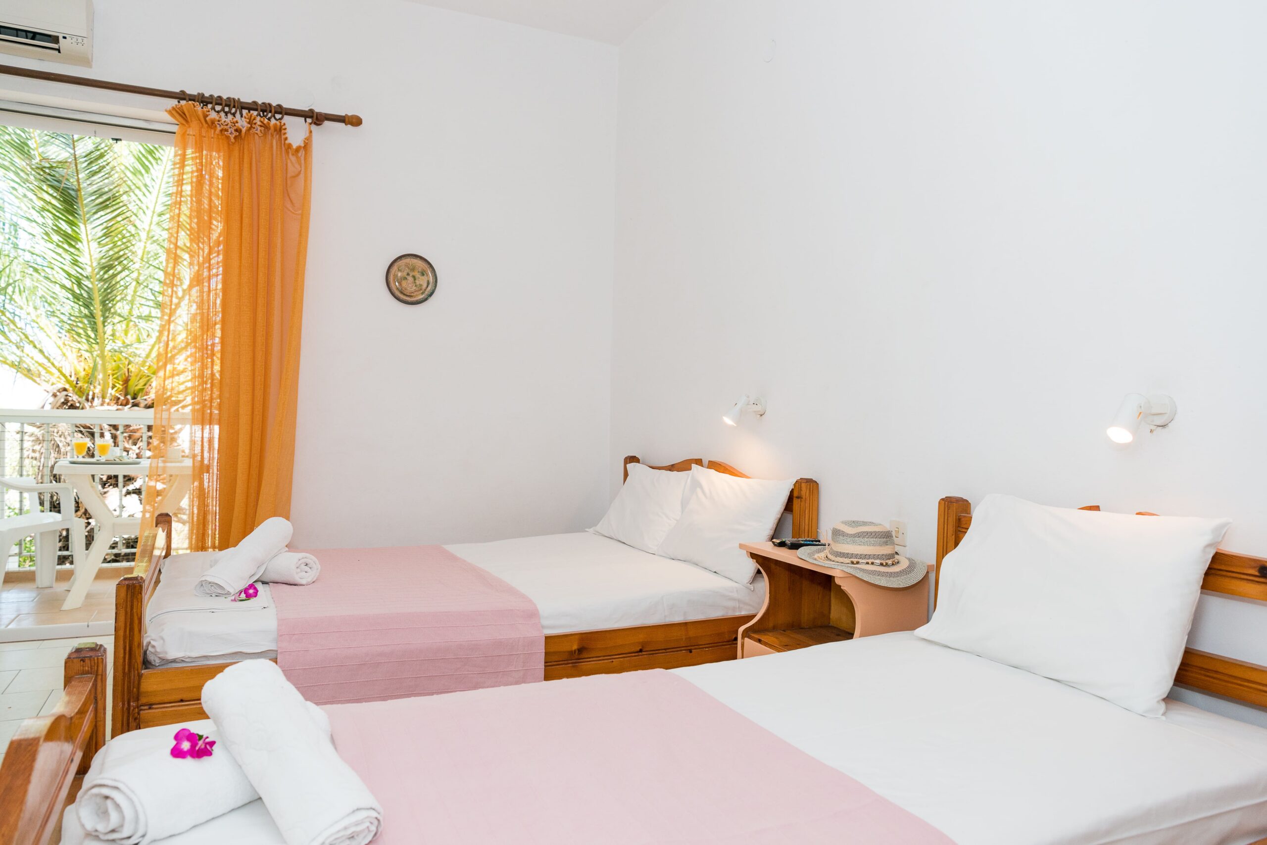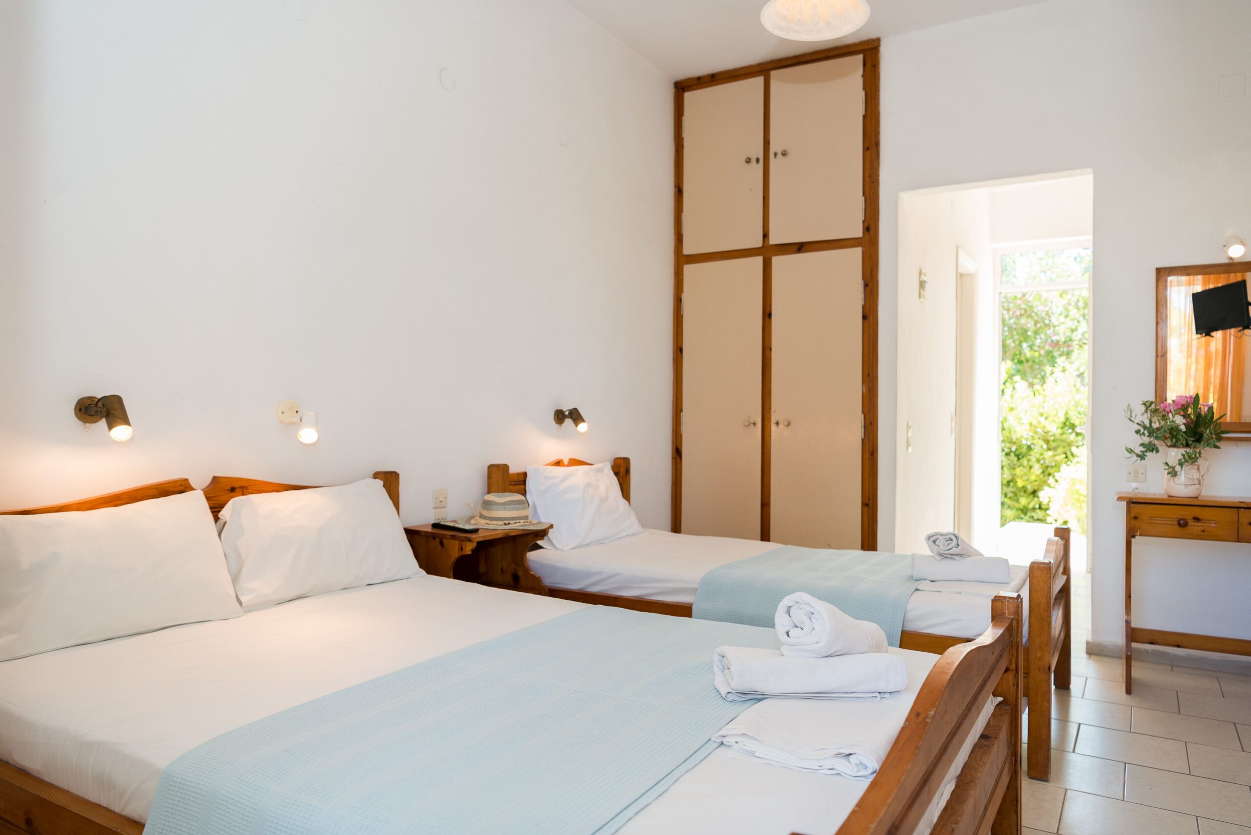 Sistemazioni: Studio monolocali recentemente ristrutturati, dotati di un letto matrimoniale, un letto singolo, bagno privato e balcone, tavolo da pranzo, piccolo angolo cottura attrezzato con piano a induzione 2 fuochi, mini-frigo, bollitore, tostapane, tv (canali locali), aria condizionata (extra a pagamento in loco €10 al giorno), Wi-Fi. Sono presenti stoviglie essenziali, biancheria da letto e da bagno; consumi di acqua, luce e gas, pulizia settimanale inclusi.
